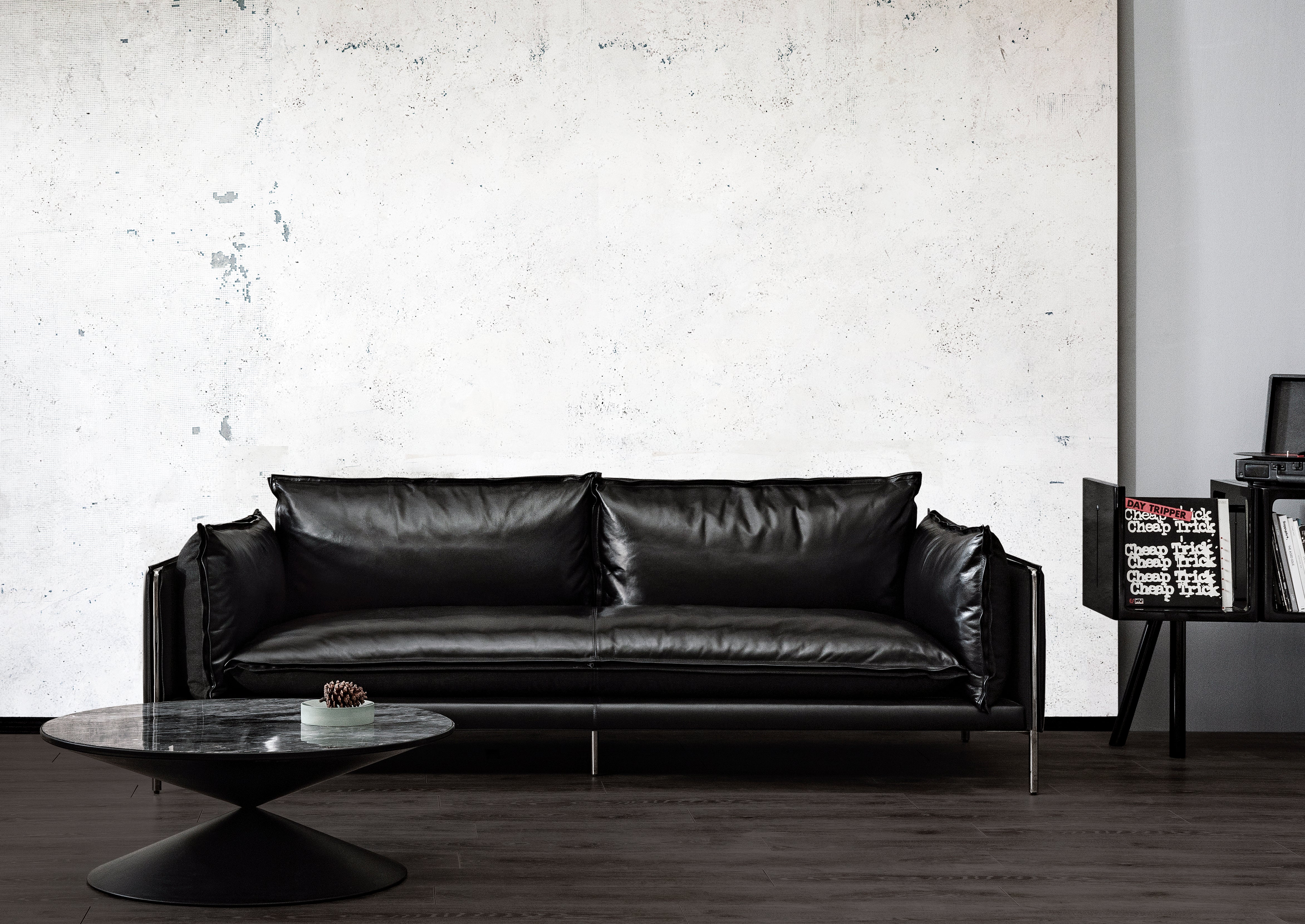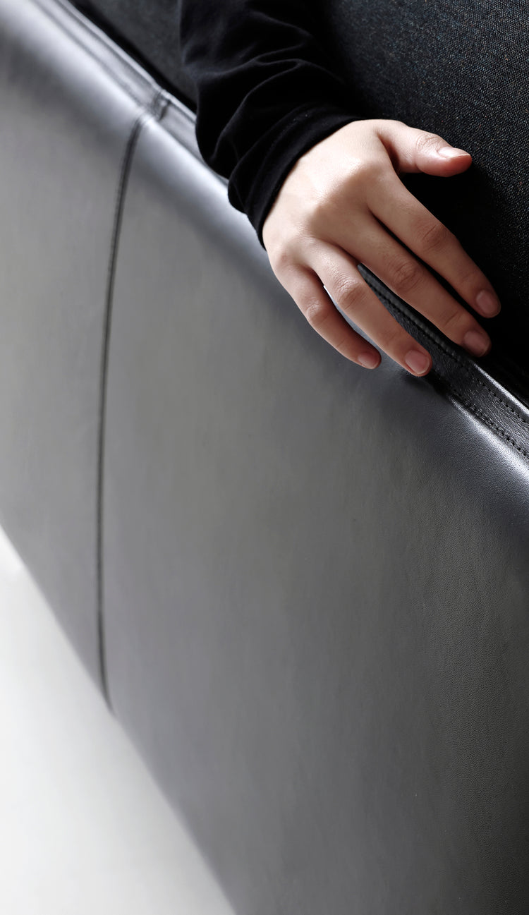 This sofa combines pure full-grain black bull leather and premium wool fabric, delivering double luxury. The materials are carefully selected for flawless top-grain bull leather and quality wool fabric used in high-end western suits. By flipping the cushions and backrest, you can effortlessly switch between an all-leather or all-wool style, catering to your mood and seasonal preferences.