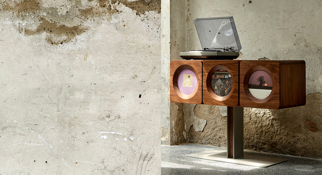 The 12h Record Cabinet is our tribute to the timeless art of music. More than just a piece of furniture, it is a reinterpretation of music, time, and culture. Music acts as a time machine—instantly transporting us to the past or into imagined futures. The 12h Record Cabinet serves as a time capsule, preserving not only your LP collection but also the emotions and memories that come with every track.